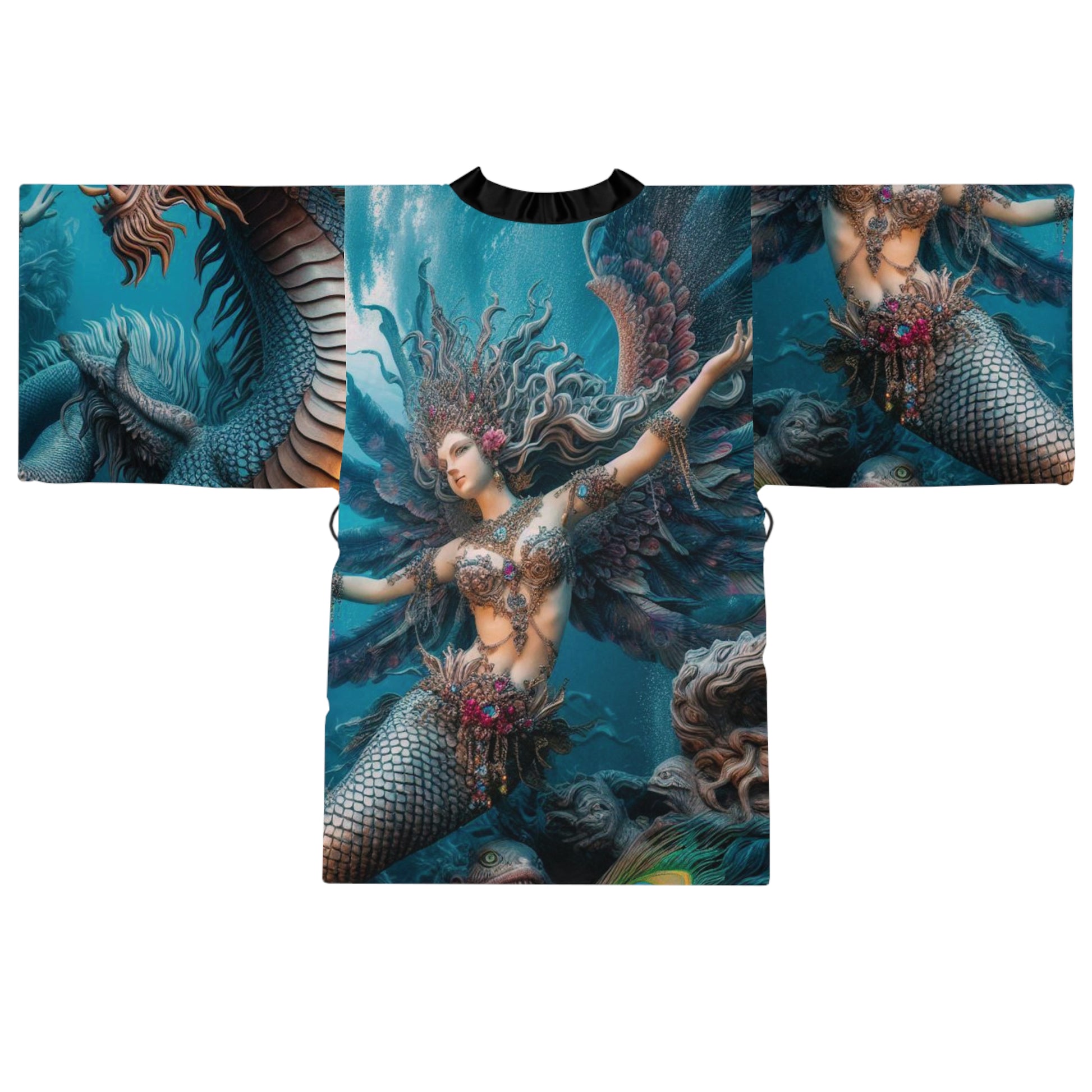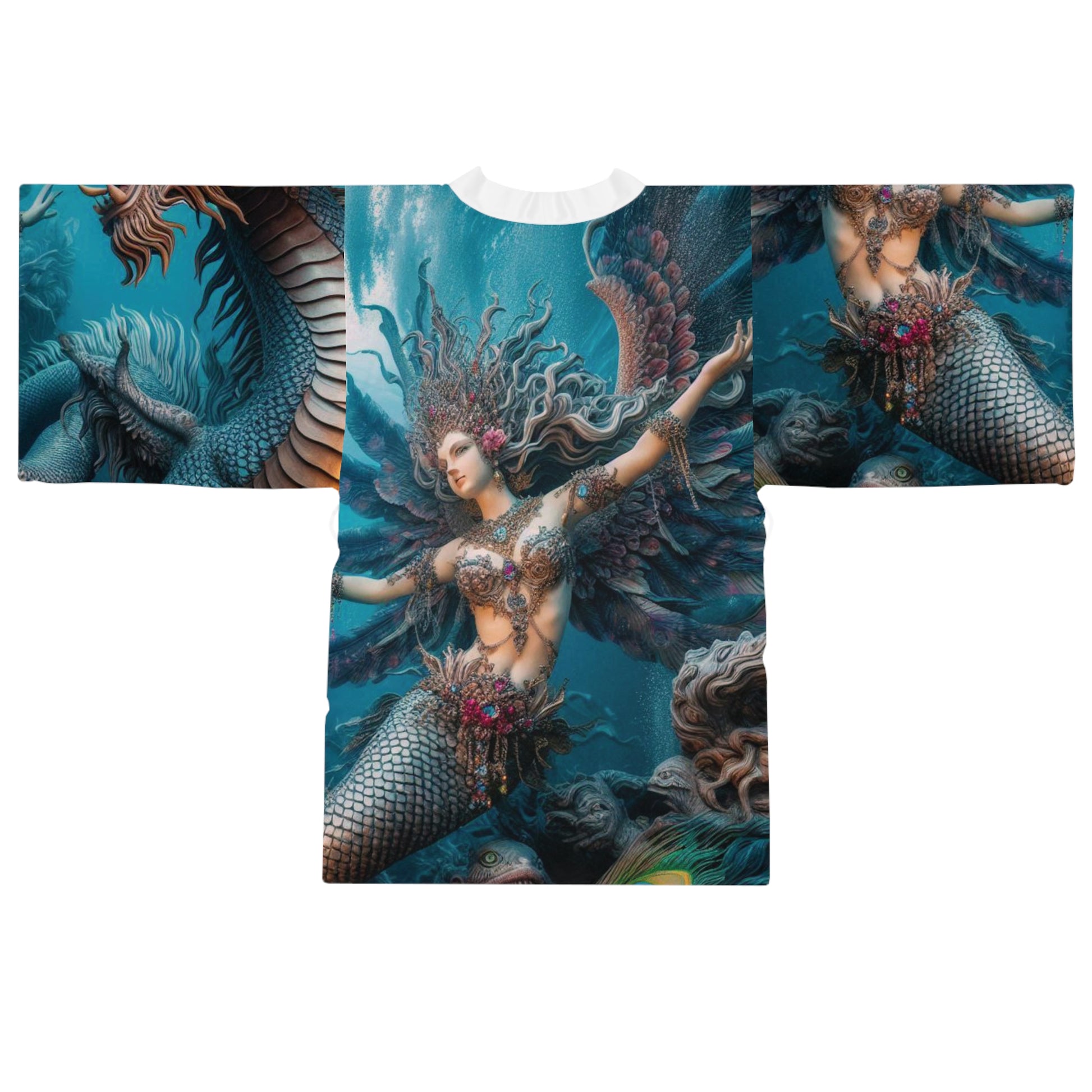 Mermaid & Dragon Long Sleeve Kimono Robe, Elegant Loungewear, Unique Gift, Festival Wear, Bohemian Style